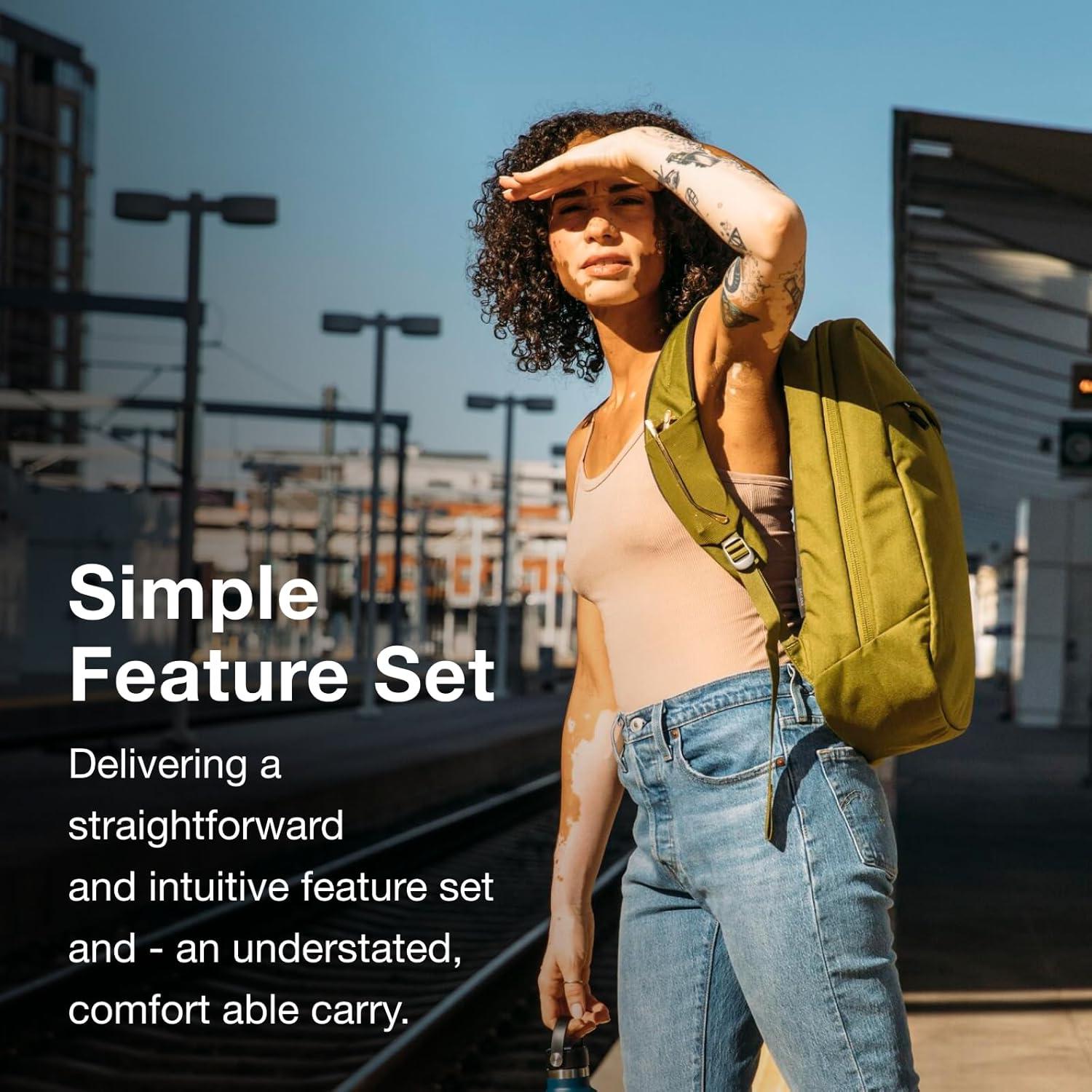 From running errands to running late for work, the Arcane Large Day was built for the big day ahead of you. A large J-zip front panel, padded internal laptop sleeve and streamlined low-profile water bottle pocket keep everyday essentials organized while a breathable harness keeps you comfortable. Hopping on the express train or stopping for an espresso? Use the built-in self-locking hook to secure your pack to something stationary and prevent your belongings from disappearing. Quality crafted with certified recycled fabrics that are made to endure daily use. The Arcane Large Day is made from 10.5 plastic bottles.