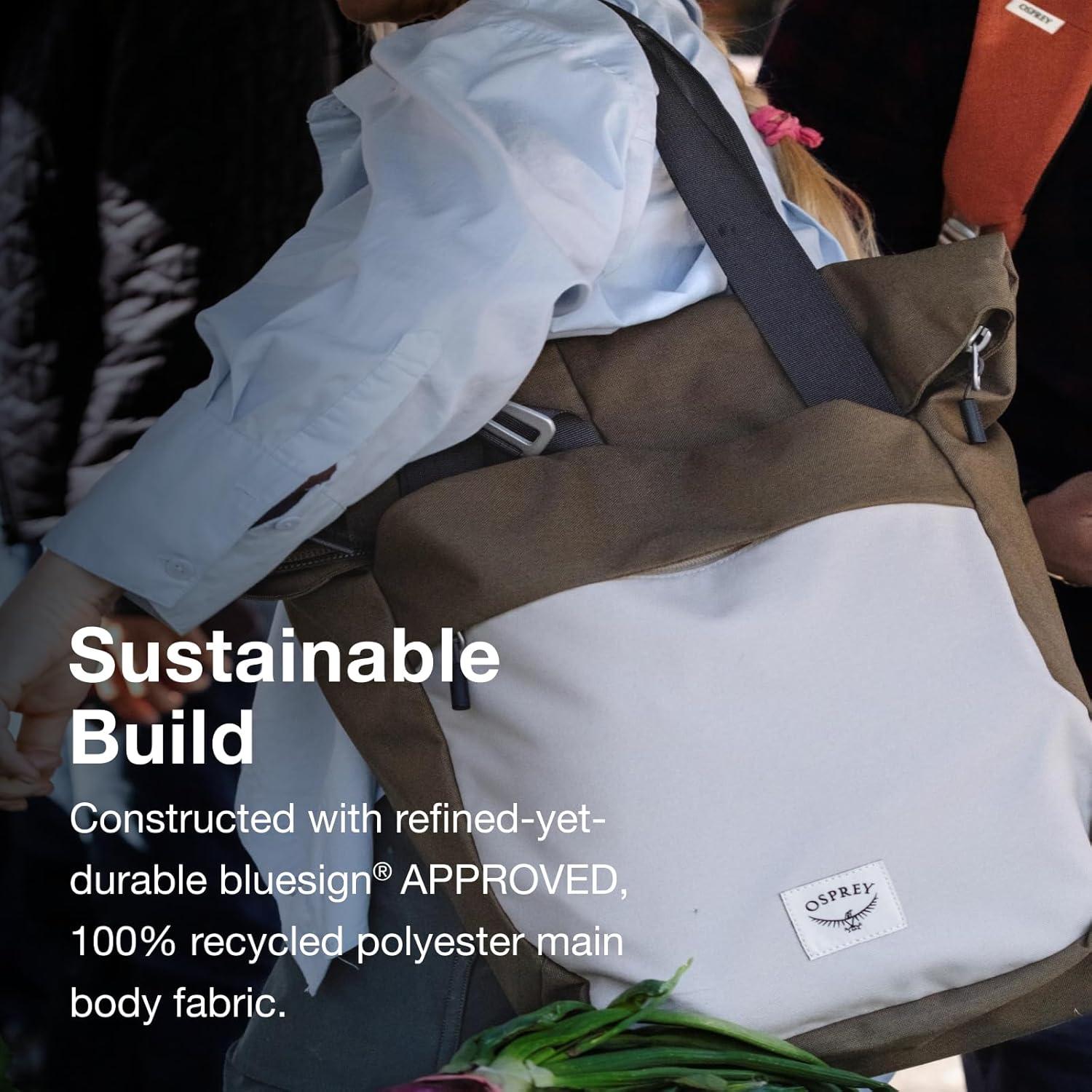 Adorned with beautiful, 100% recycled main body fabric and designed for utmost versatility, the dual-carry Osprey Arcane Tote Pack constantly finds new ways to be handy. Tuckaway tote straps and harness allow for two stylish, comfortable carry styles in one. Easily store your items with useful pocketing and a padded laptop sleeve, and get ready for compliments wherever you go.