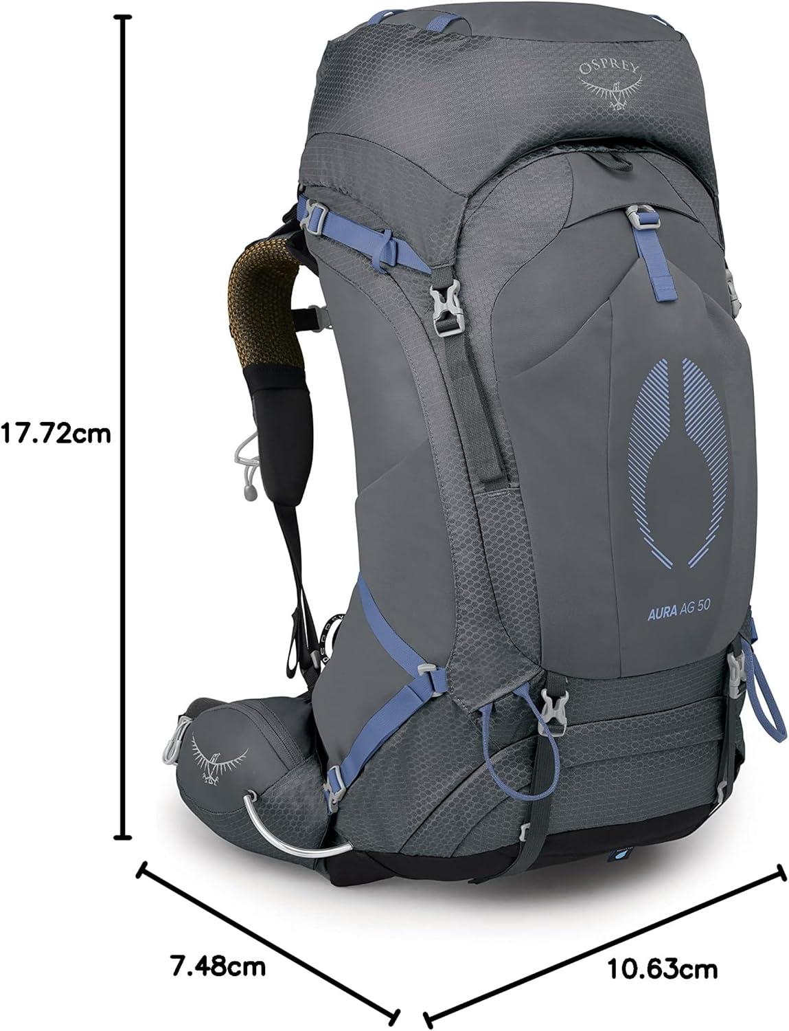 Osprey Aura AG 50L Women’s Backpacking Backpack, Berry Sorbet Red, WXS/S(Tungsten Grey)