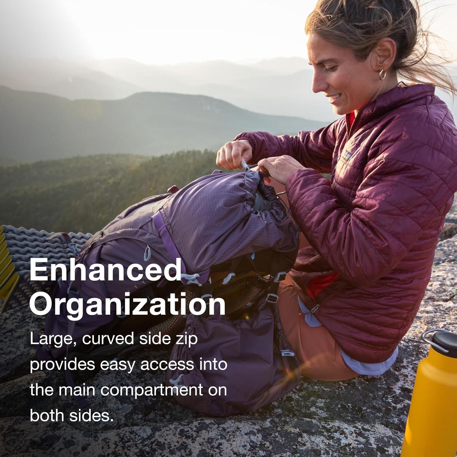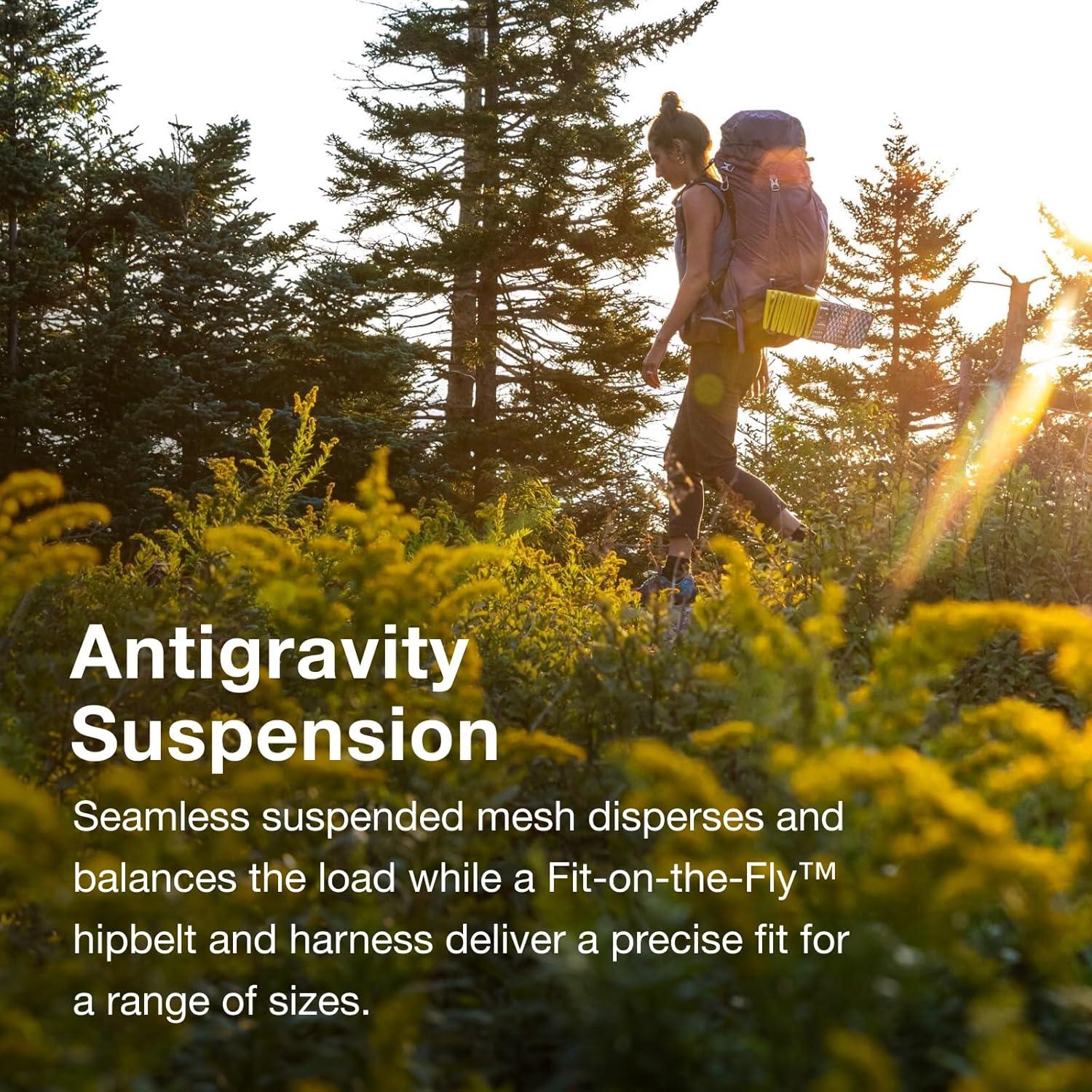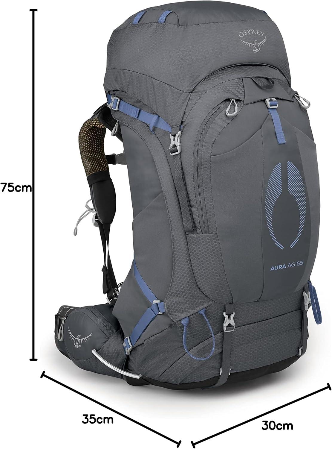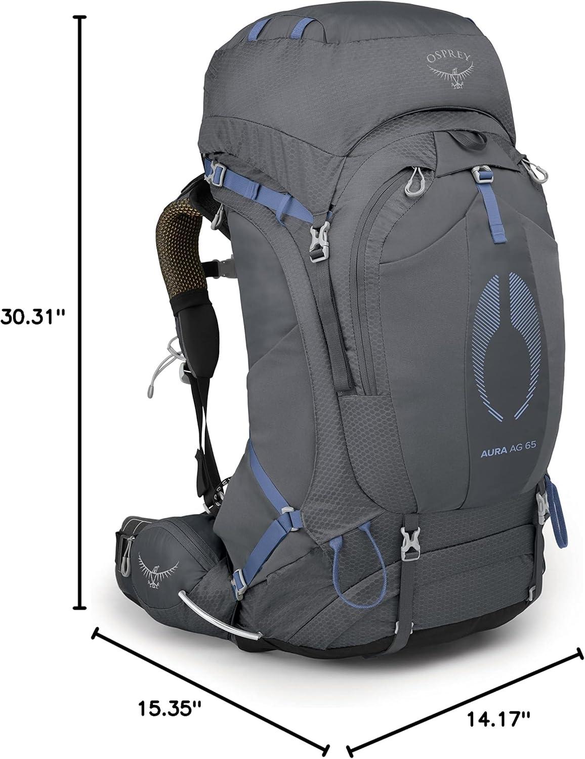 Tackle heavyweight weekends or weeklong backpacking trips with gravity-defying comfort and premium ventilation with the Aura AG 65. Featuring a women's-specific fit, its innovative suspension and harness delivers a seamless fit that envelopes your back and hips in 3D-suspended mesh. From easy-to-use stretch mesh side pockets, Stow-on-the-Go trekking pole attachment and integrated raincover, the Aura AG 65 is a compromise-free women's backpacking pack. Made with recycled main, accent and bottom fabrics.