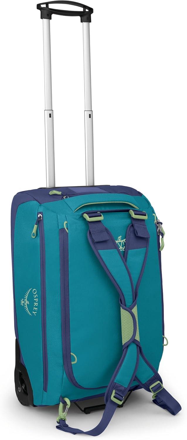 Osprey Daylite 40L Wheeled Carry On Collapsible Travel Duffel Bag, Lightweight Rolling Suitcase, Black(Blue Spikemass/Alkaline)