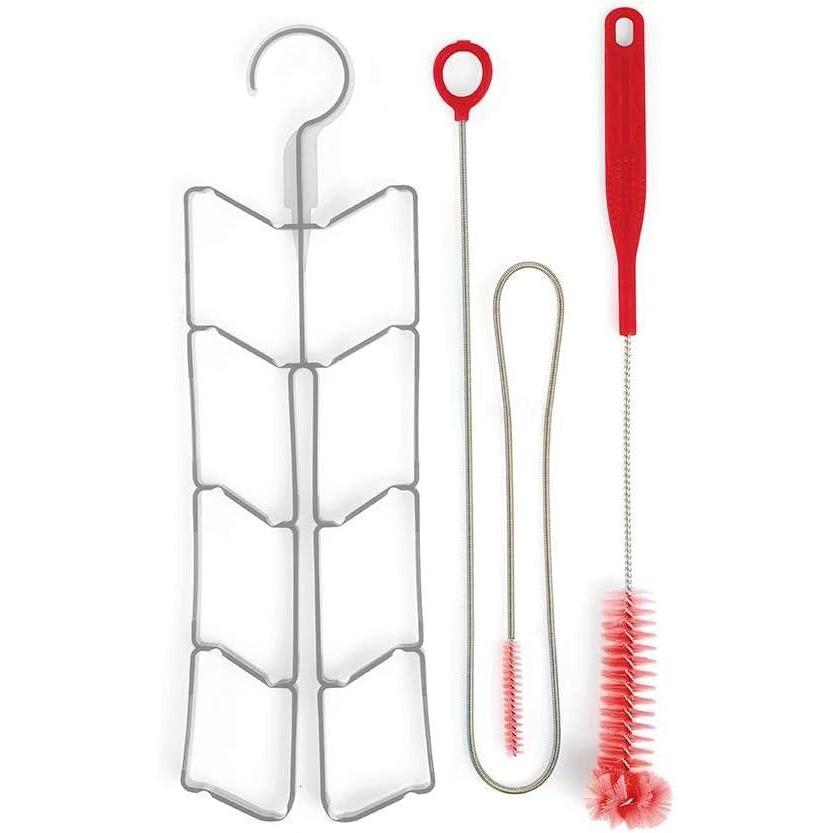Includes reservoir cleaning brush, delivery system cleaning brush, drying rack