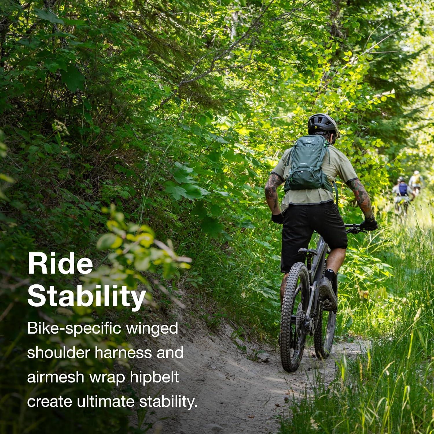 Ride Stability – Bike-specific winged shoulder harness and airmesh wrap hipbelt create ultimate stability for the roughest rides