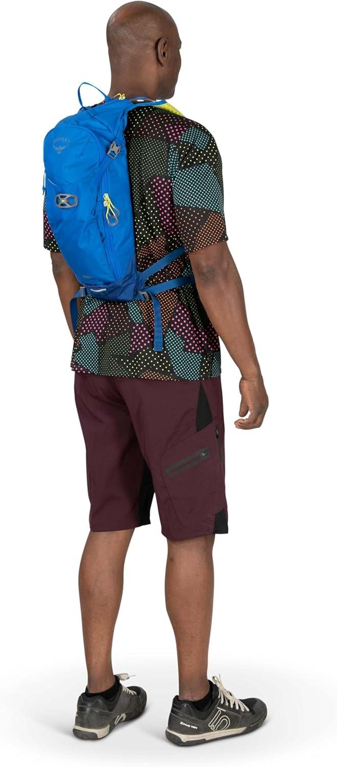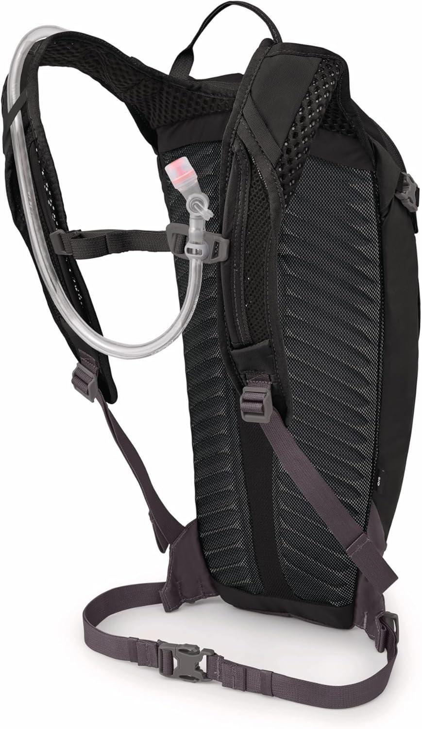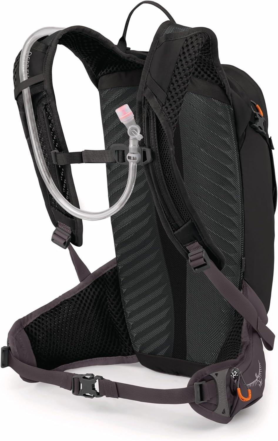 Comes with an Osprey Hydraulics LT 2.5 L reservoir with direct zip access and sternum strap magnetic bite valve attachment.