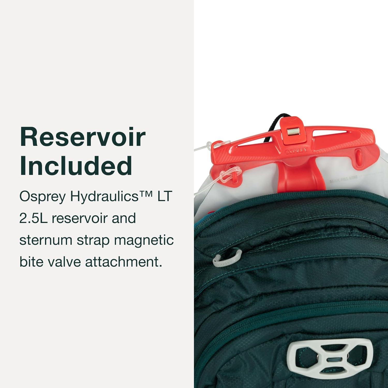 Reservoir Included – Comes with an Osprey Hydraulics LT 2.5 L reservoir and sternum strap magnetic bite valve attachment