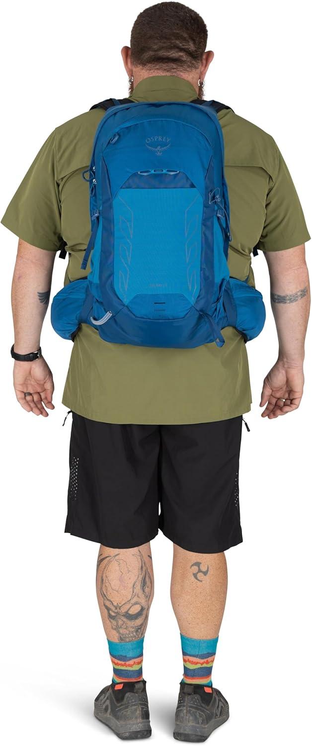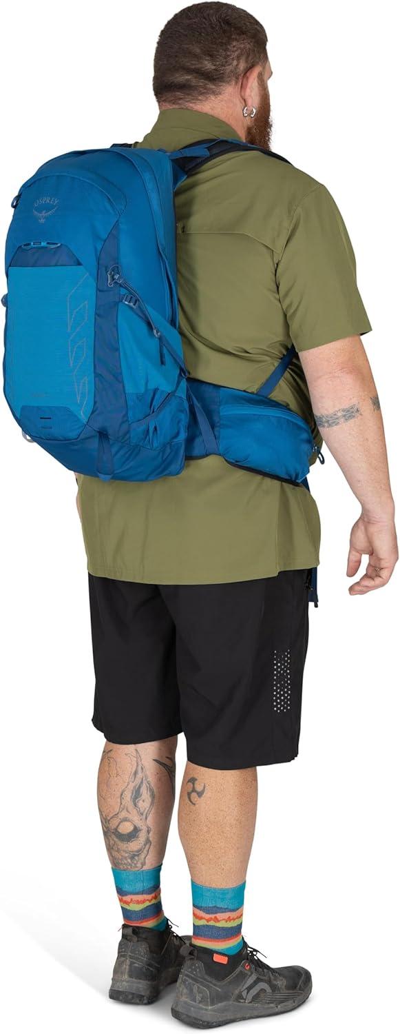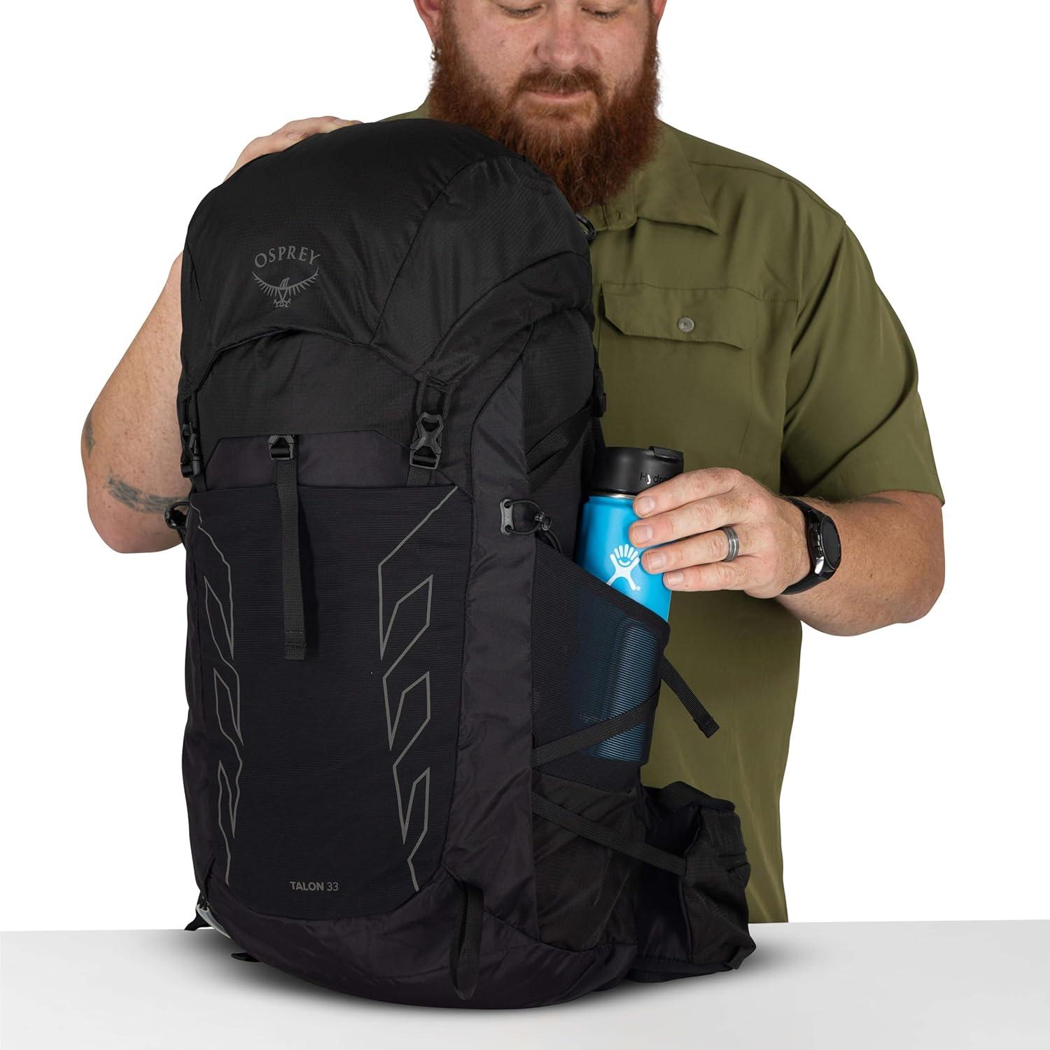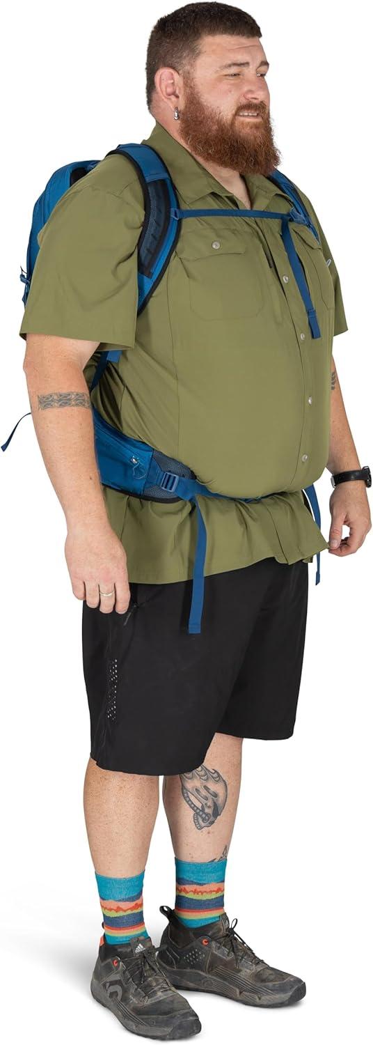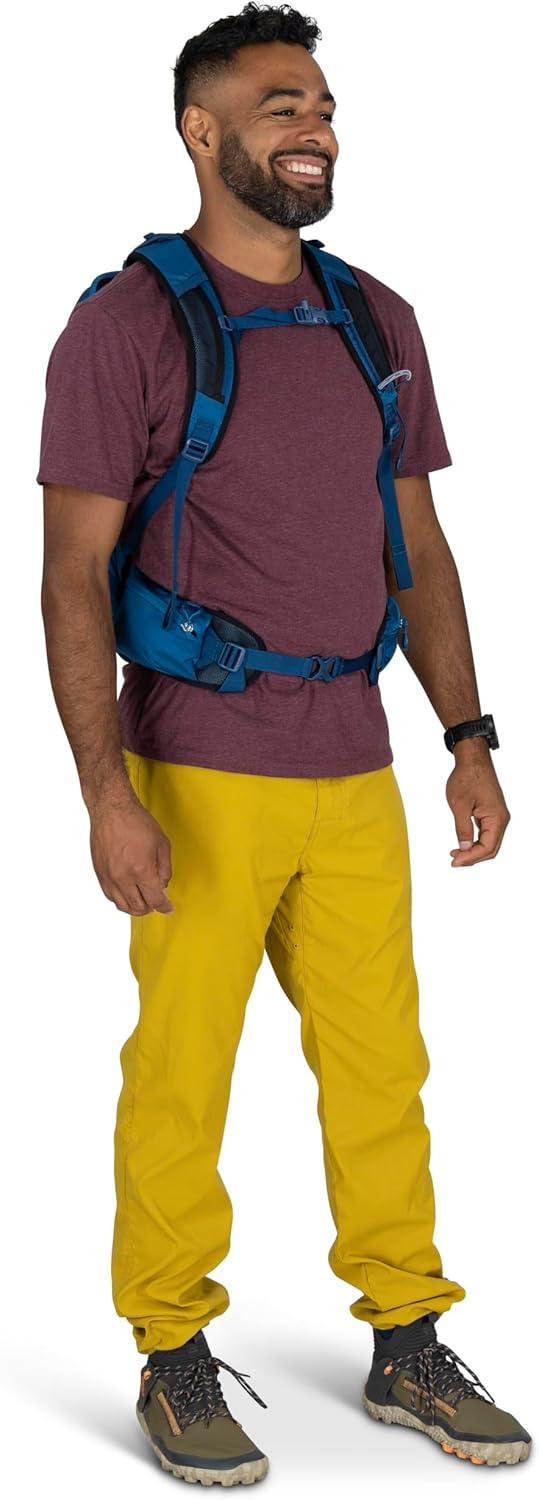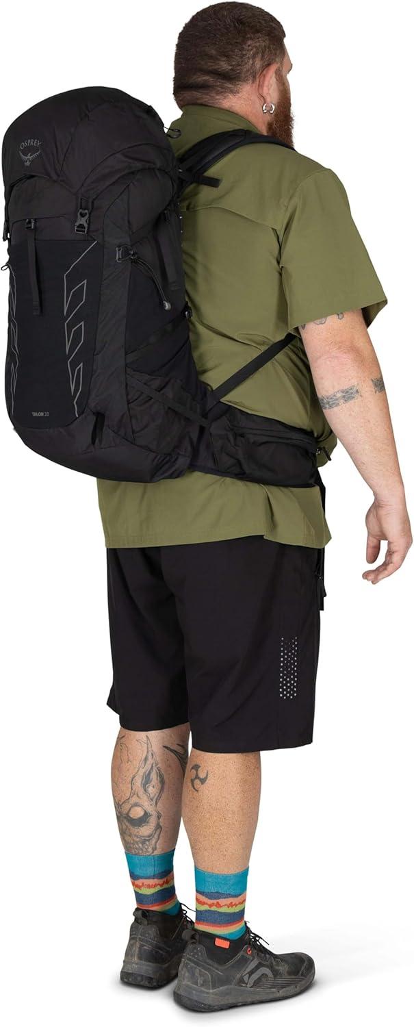 The Osprey Talon™ 22L is a lightweight bag for men, built for full-day hikes, biking, and travel. With a spacious main compartment, dual-zippered hipbelt pockets, top panel pocket, and stretch mesh side pockets, it keeps your hiking essentials organized and accessible. A hydration-compatible sleeve ensures water is always within reach, while the AirScape™ backpanel and BioStretch harness deliver breathable comfort and close-to-body stability. Made with 100% recycled, bluesign® APPROVED main body, bottom and liner fabrics, this durable daypack is designed for dynamic movement no matter the adventure.