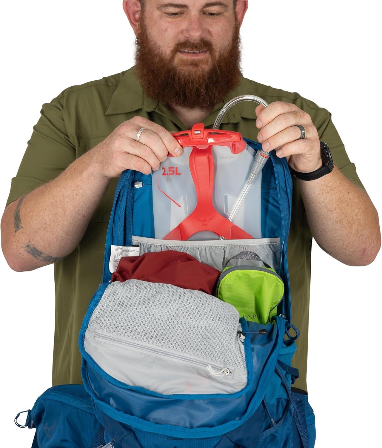 PRECISE & BREATHABLE FIT: Stay cool and supported with an AirScape backpanel that delivers a close-to-body, stable carry and improves airflow to reduce sweat while hiking or cycling. The adjustable sliding yoke and BioStretch hipbelt create a personalized men's fit, keeping the bag stable and comfortable during hikes, bikes, day trips, and other adventures.