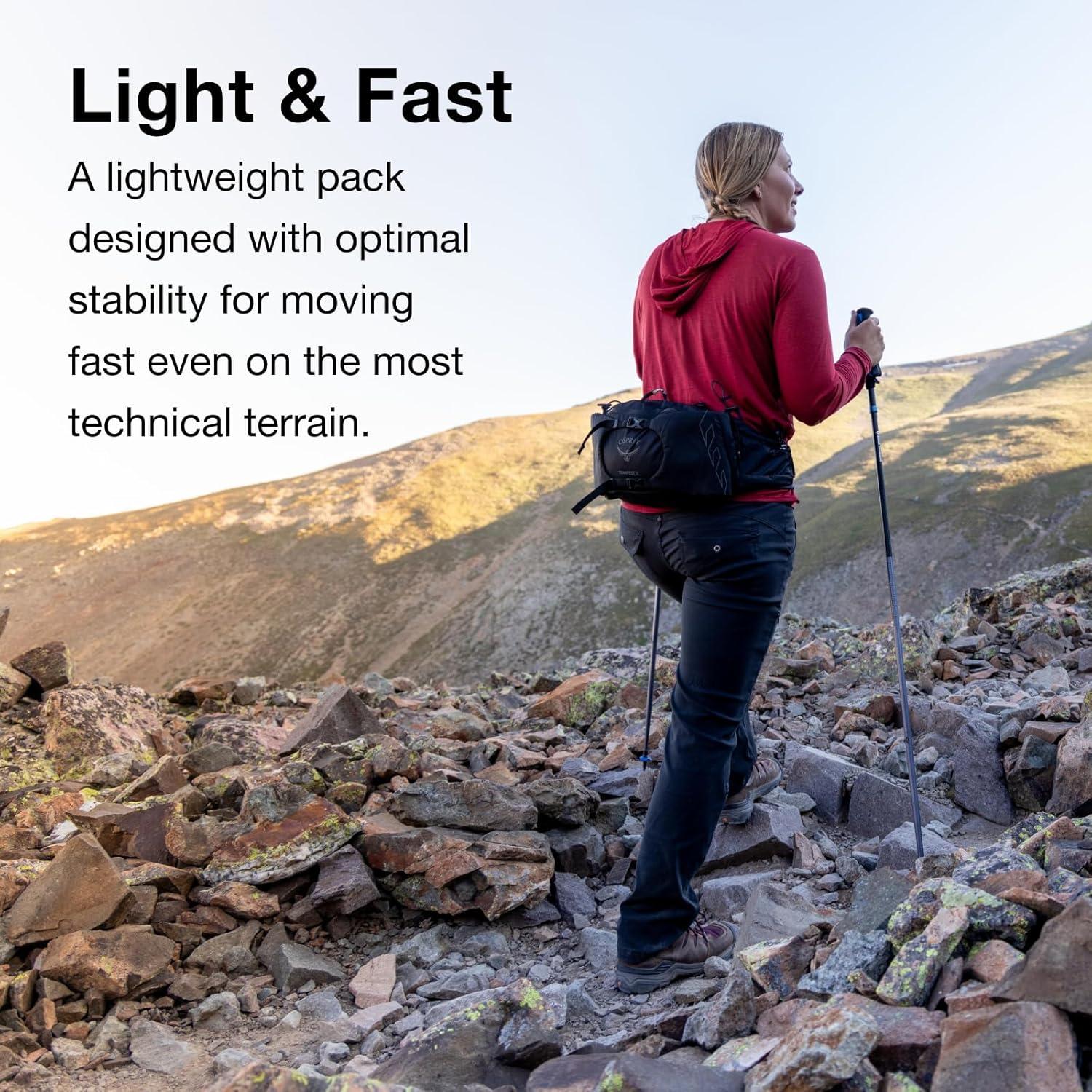 LIGHTWEIGHT & VERSATILE DESIGN: The Osprey Talon 6L is a compact waist pack that keeps your essentials close without the weight of a full backpack. Its lightweight design and multi-sport versatility make it an ideal choice for hikes, cycling, travel and other outdoor adventures where freedom of movement matters most.