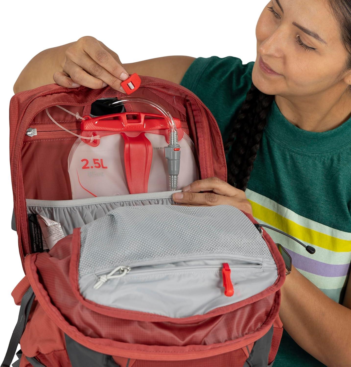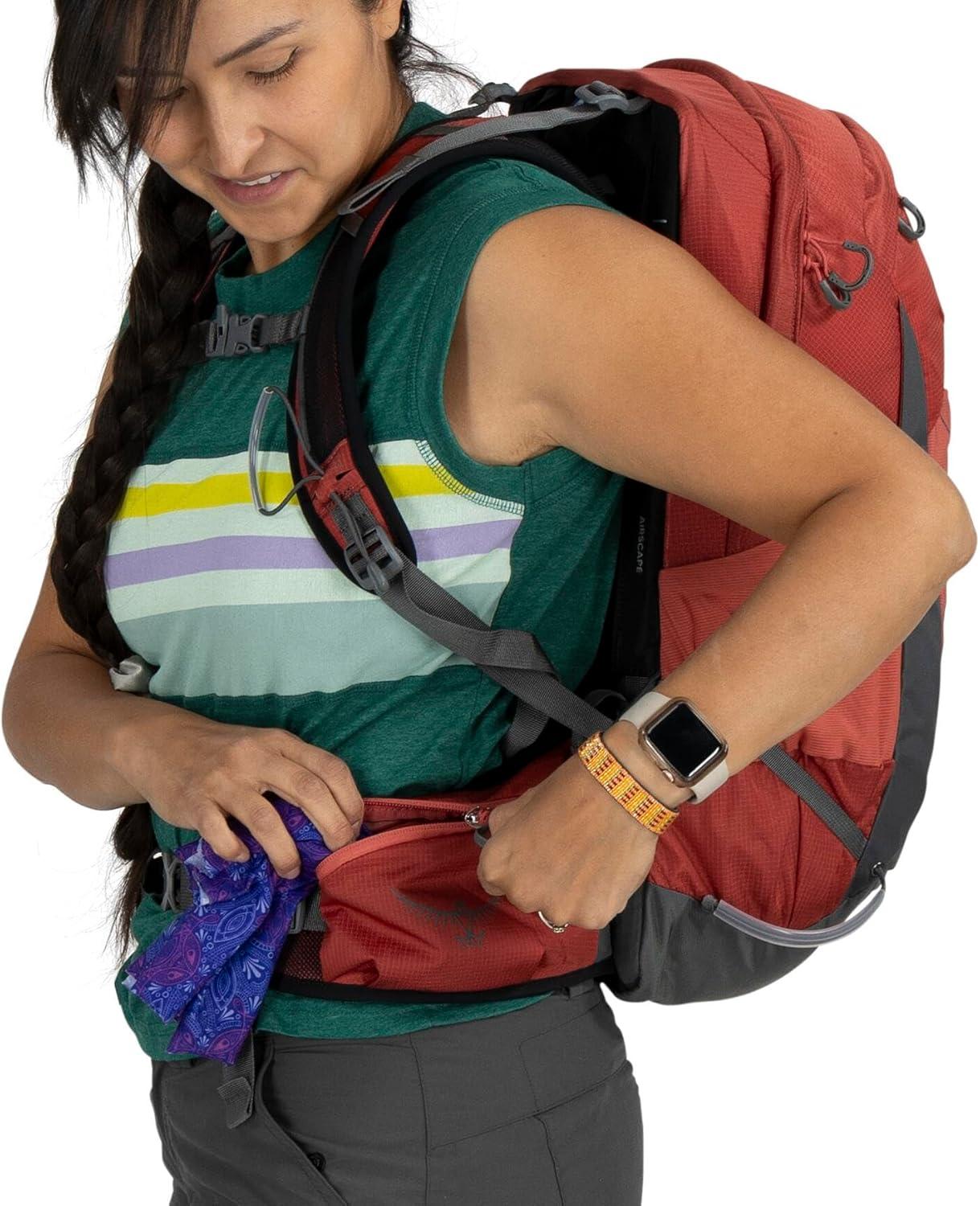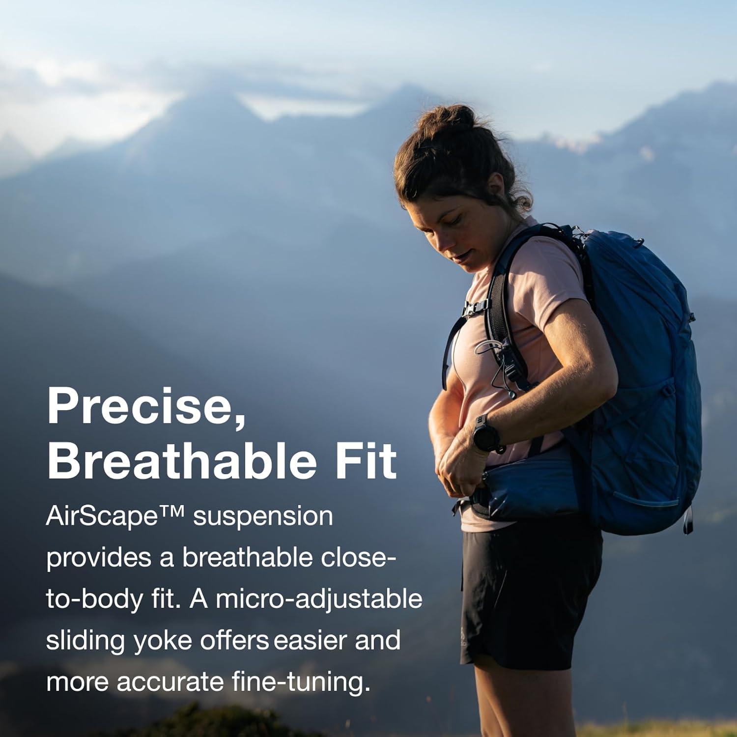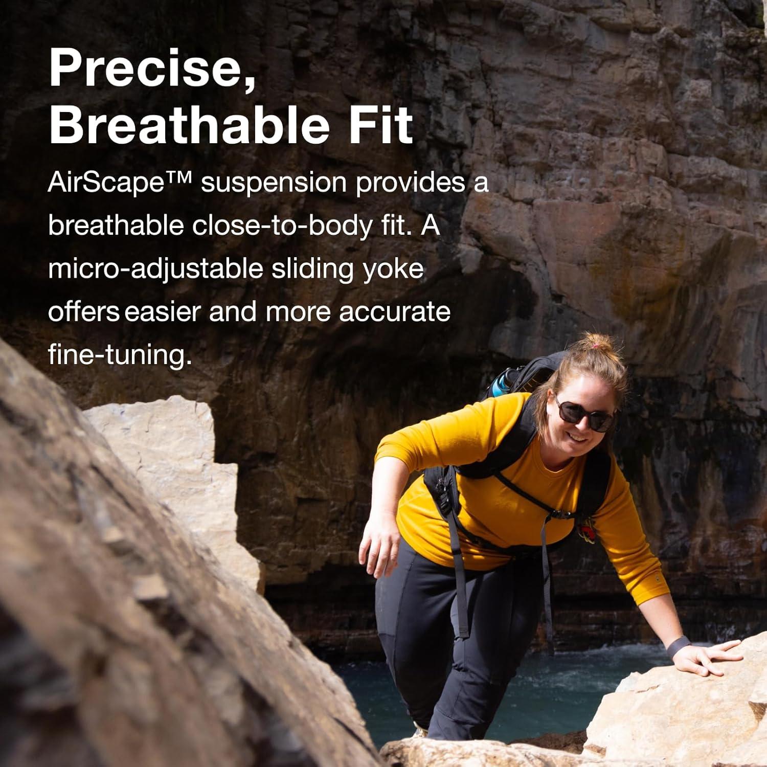 PRECISE & BREATHABLE FIT: Stay cool and supported with an AirScape backpanel that delivers a close-to-body, stable carry and improves airflow to reduce sweat while hiking or cycling. The adjustable sliding yoke and BioStretch hipbelt create a personalized women's fit, keeping the bag stable and comfortable during hikes, bikes, day trips, and other adventures.