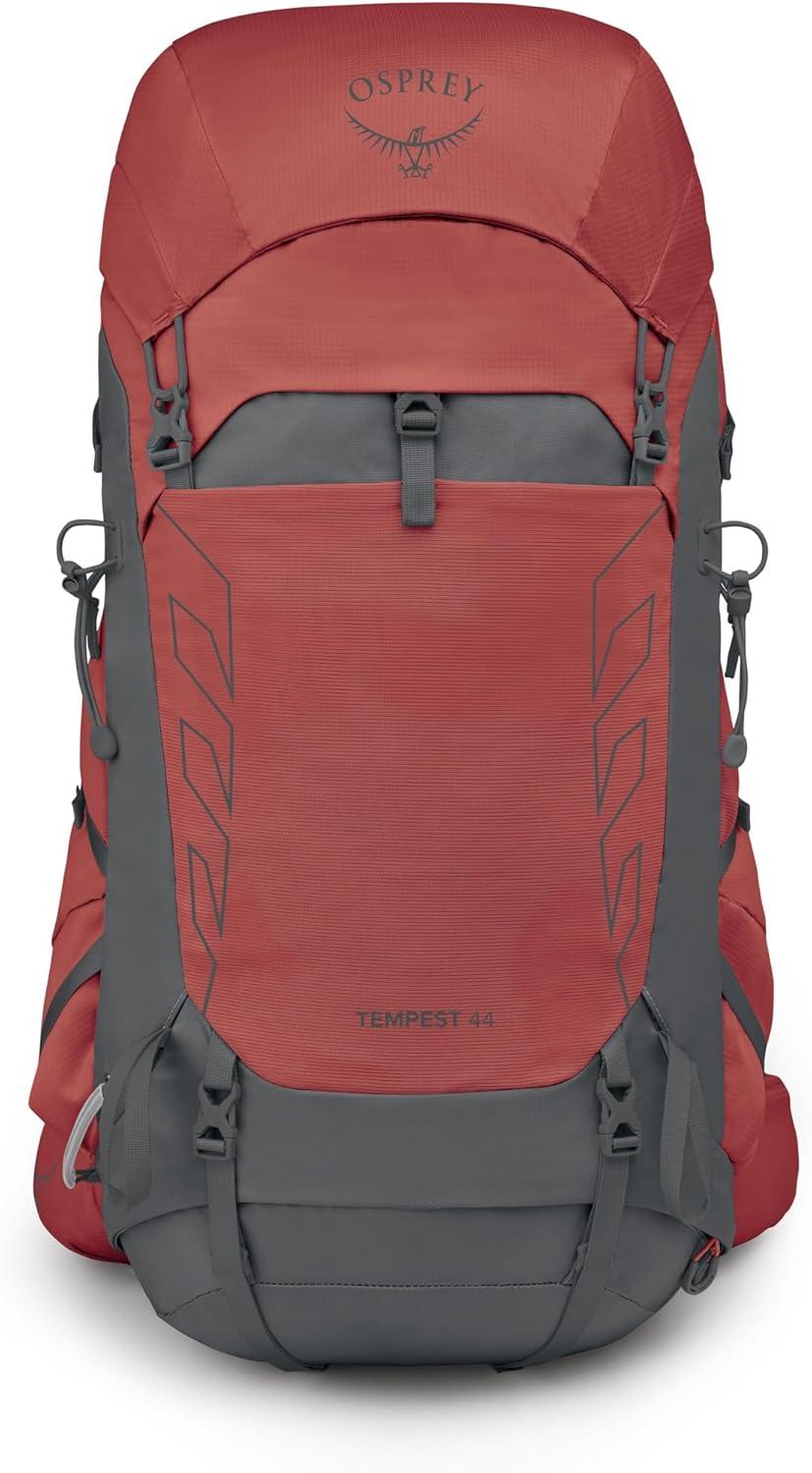 Designed for ultralight, multi-day adventures, the Osprey Tempest™ 44L hiking backpack for women features an injection-molded AirScape™ backpanel and adjustable hipbelt for close-to-body stability across demanding terrain. This hydration-compatible bag includes a spacious top-loading main compartment, a separate sleeping bag compartment, a hydration sleeve (reservoir sold separately), dual-zippered hipbelt pockets, and attachment points for ice axes and trekking poles. Multiple storage options keep hiking essentials, sleeping gear, and travel must-haves secure and organized. Made from 100% recycled, bluesign® APPROVED main body, bottom, and liner fabrics, this durable women's-fit backpack is built for quick overnight hikes and lightweight multi-day trips. Reach for reliable performance and extra storage when it matters most.