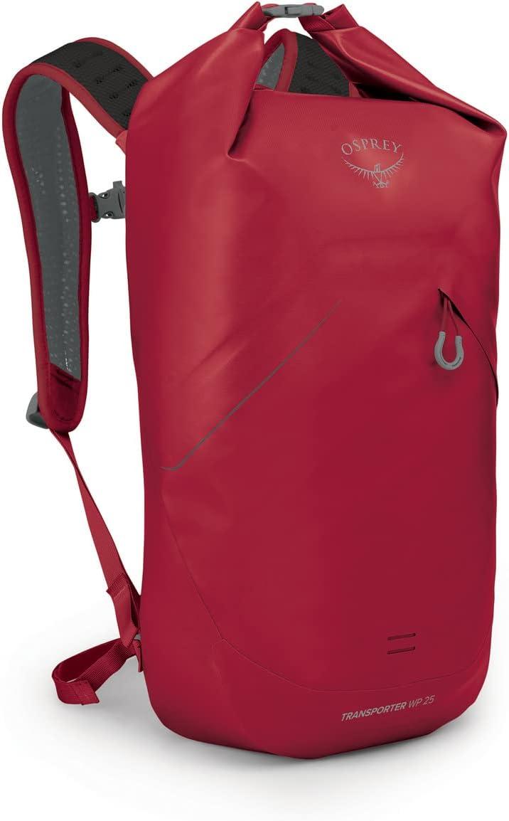 Osprey Transporter 25L Roll Top Waterproof Laptop Backpack, Black(Poinsetta Red)
