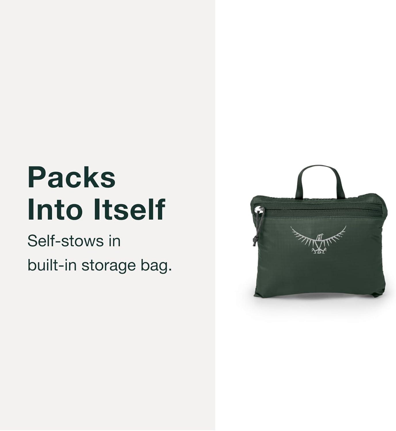 Light in weight, heavy with features. Expand your luggage for day trips at your destination, or have an extra bag for souvenirs on the return journey, with this simple, ultralight and packable day pack that provides capacity on demand. The Osprey Ultralight Stuff Pack bag is part of the coordinated Ultralight System for optimized packing. Customize your experience by adding on smart packing and organization accessories that meet your exact travel, daily, gym, overnight, outdoor or adventure needs. The perfect bag for bringing home souvenirs, hiking through the hills, or exploring new cities and trails. The 18 liter lightweight backpack self-stores within it's own pocket to save space and easily fits in larger bags and luggage or within camping essentials. Osprey is committed to sustainability and we cherish our planet and the opportunities it provides us. We strive to be not only innovators of high-quality products, but responsible citizens who aim to tread lightly as we cherish the world we live, work and play in.